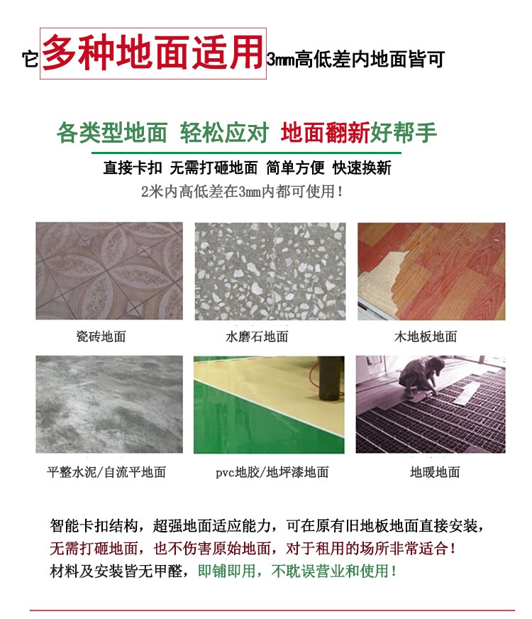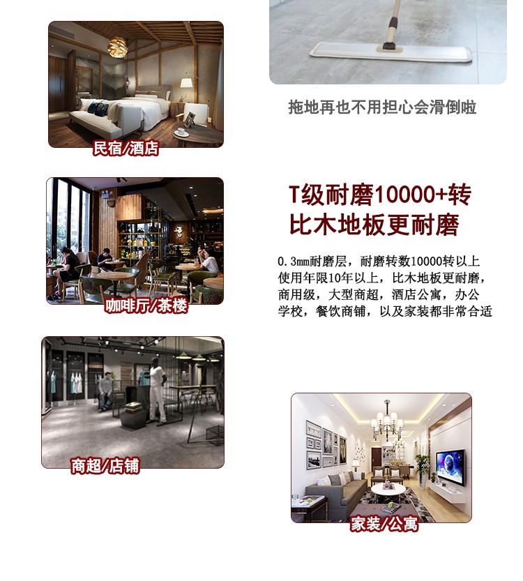 介紹:spc鎖扣石塑地板,是由鈣粉、聚氯乙烯穩(wěn)定劑組合的一定比例混合形成復合地鋪材料。是現在非常流行的一種無醛環(huán)保地板,極為穩(wěn)定、高性能、完全防水、高密度銷售芯、耐壓痕;它可以很容易地安裝在不同類型的地面基地,混凝土,陶瓷或現有的地板,非常適合用于舊地面改造,老舊瓷磚木地板地毯等地面翻新使用。安裝快速簡單,材料環(huán)保無味,即鋪即用。是響應國家減排而發(fā)明的新型材料,是100%不含甲醛的環(huán)保地板,是真正的0甲醛地板。因其厚度薄、花色多、款式全、低碳環(huán)保的性能可廣泛應用于幼兒園、醫(yī)院、辦公室、寫字樓、商場、家居、酒店、公寓、別墅、KTV等公眾場所。